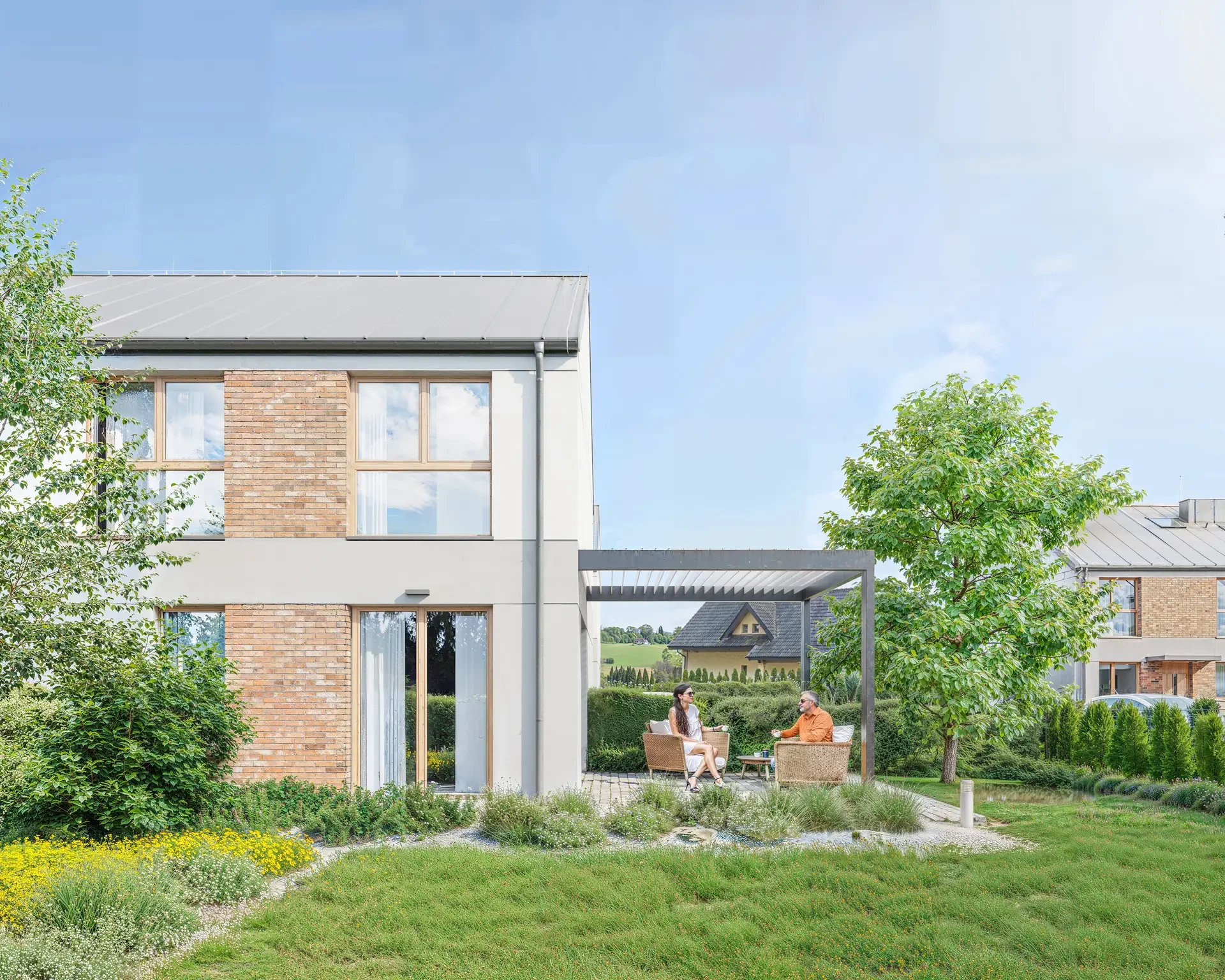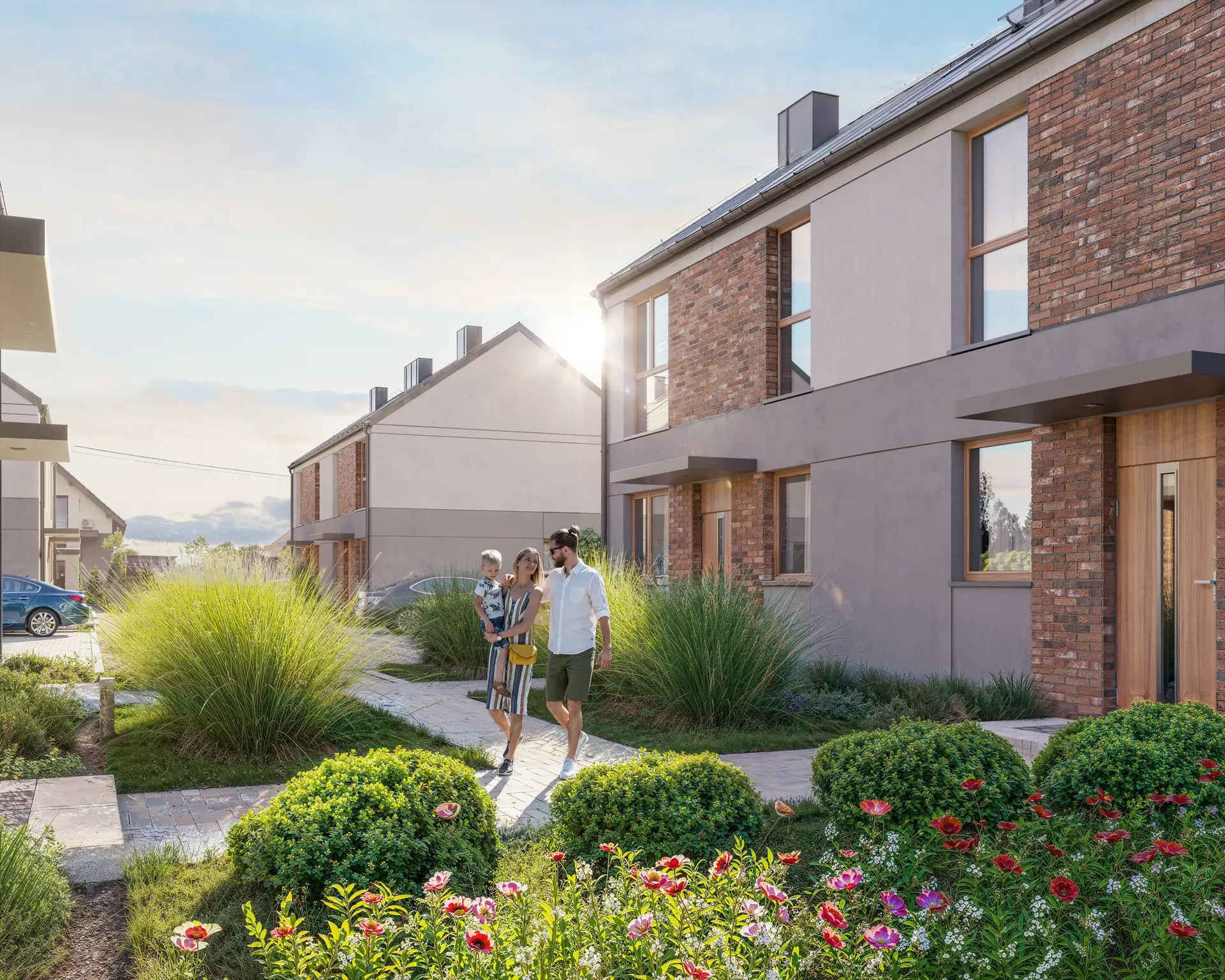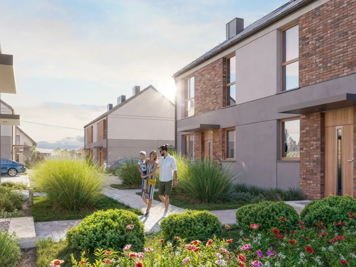 Każdy dom na naszym osiedlu posiada duży prywatny, funkcjonalny ogródek, który stanowi idealne miejsce do relaksu i spędzania czasu na świeżym powietrzu.